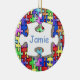 Fundo colorido, modelado em forma de mandíbula branca, para personalizar com um nome no Enfeites de natal alternativo infantil.