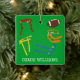 Celebrar os treinadores de futebol e os jogadores com este Enfeites de natal personalizado. à frente estão ilustrações de um cinturão de futebol e colorido contra um fundo verde-grama brilhante com um ponto para adicionar um nome em letras brancas. O verso tem um lugar para adicionar sua própria foto.