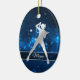 Ornamento De Cerâmica Jogadora Tênis Elegante das Luzes Azuis Prateada