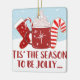 Este adorável e artístico ornamento de Natal é perfeito para dar a vibração para o seu evento sazonal. Ele retrata vermelho, branco, azul-piscar-marisco-amarelo, e cacau-quente, cor-de-rosa-pincel, biscoito-candi, e ilustrações de biscoito em cima de uma cama de neve e neve caindo. Também neste design é apresentada a citação de feriado, "Esta é a estação a ser alegre." É adorável, moderno, único e festivo para esta estação de inverno! ***NOTA DE DESIGN IMPORTANTE: Para qualquer solicitação de design personalizada, como solicitações de correspondência de produtos, alterações de cor, mudanças de posicionamento ou qualquer outra solicitação de alteração, clique no botão "CONTACT" ou envie um e-mail ao designer diretamente em lafemme.art@gmail.com. Você pode até enviar um e-mail para ela solicitando um design completamente personalizado e novo.