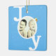 Foto de alegria no feriado azul, branco, ouro e céu estrelado adicione seu próprio ornamento de mensagem. Personalize com sua própria foto alegre e uma mensagem personalizada no verso. Projetada por Sarah Trett para www.mylittleeden.com