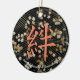 Caractere japonês para gravatas de família e amizade em um bonito fundo de chiiogami floral preto e ouro. Este ornamento faria um belo presente para qualquer Japanófilo, ou para uma pessoa com herança japonesa.