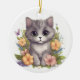 Um adorável ornamento de gatinho de cinza.