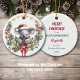 Aqui está um adorável ornamento personalizado para uma neta com uma adorável imagem de aquarela de urso koala na frente. O ursinho veste um chapéu de Papai Noel vermelho e branco, e segura um pacote de presentes. Está dentro de uma tosse de pinheiro e uma coroa oca de morango. A parte traseira do ornamento tem 7 campos de texto para sua própria personalização. Isso pode ser facilmente adaptado para um neto, ou para os pais darem para sua filha ou filho...até uma sobrinha ou sobrinho. Faça-o dizer o que quiser!