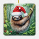 Uma preguiça vestindo um Papai Noel confortavelmente pendura de um galho no meio de uma floresta tropical exuberante