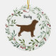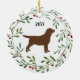 Enfeite de Natal Labrador Chocolate em um lindo desenho de grinalda. Personalize com nome e ano. COPYRIGHT © 2020 Judy Burrows, Black Dog Art - Todos os Direitos Reservados