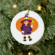 Ornamento De Cerâmica Laranja roxa dos desenhos animados da bruxa atrás