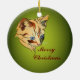 Este Enfeites de natal apresenta o retrato de um adorável gatinho de mesa laranja com olhares azuis colocados contra um fundo verde sazonal. O texto ao contrário é fácil de personalizar.