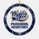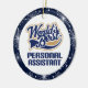 Logotipo do assistente pessoal do mundo do estilo dos esportes o melhor no azul e o tan vem em um ornamento do presente de época natalícia do Natal da lembrança com o gancho do cabo do laço do ouro e sparkles azuis estrelados beira do floco de neve e impressão da parte traseira. Stuffer da meia da ocupação do divertimento ou presente do reconhecimento para um assistente pessoal.