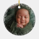 Design personalizável de fotografia, nome e letra com filhotes de animais pintados com aquarelas bonitinhas com elementos falsos de brilho prateado. Personalize para o primeiro Natal do bebê, ou para qualquer criança como presente personalizado especial.