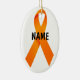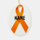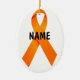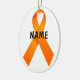 Este é um belo Enfeites de natal com fitas laranja para sensibilizar para a cura da leucemia, que se tornou ainda mais perfeita acrescentando um nome de uma pessoa especial que combateu a leucemia.