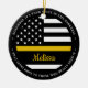 A Cola De Ouros Que Mantém Tudo Junto. Ornamento de Linha Dourada Personalizado para 911 despachantes e despachantes policiais. Personalize este adorno do despachante com nome e ano. Este presente personalizado de despachante é perfeito para a apreciação do despachante policial, o obrigado de despachante 911 que você oferece e os presentes ou favoritos para festas de despachante. Encomendar estes enfeites de natal de despachante para o departamento de polícia ou posto de bombeiros. COPYRIGHT © 2020 Judy Burrows, Black Dog Art - Todos Os Direitos Reservados. Linha Dourada fina 911 Expedidor de natal ornamento cerâmico