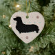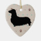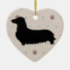 Para pais de cães, adoramos incluir nossos filhos peludos na comemoração de feriado ou evento familiar. Este ornamento com uma silhueta de um antigo Dachshund é a forma perfeita de comemorar seu querido cão. Personalize as costas com o nome do seu cão, títulos ou o seu ditado favorito. Com um padrão de impressões de pata bronzeadas e pontos azuis em um fundo bege, este ornamento deve agradar a qualquer amante de cachorros ou dono de animais de estimação.