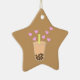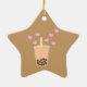 Chá de leite de bolha — chá de leite preto com boba tapioca de pérolas com corações cor-de-rosa.