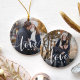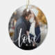 Ornamento De Cerâmica Love Script Overlay Foto & Inicials