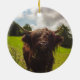 Ornamento De Cerâmica Luz verde do campo verde da vaca em lata negra