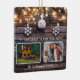 Rustic Wood Lights 2 Foto Nova Casa com fundo de madeira, flocos de neve, estrelas primitivas e luzes de fada apresentam "1rua Natal em Nossa Nova Casa", Nome da Família, endereço e ano. O pedido também apresenta 2 das suas fotos favoritas. Nosso ornamento apresenta uma foto de casa e de família. O ornamento faz parte de uma coleção.
