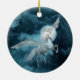Pegasus o cavalo alado voa entre as nuvens à luz da lua, em tons de ornamento azul