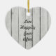 Ornamento cardíaco Rustic Wood White Chic Faux com inspiração vive feliz para sempre após a tipografia