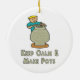 O design da Potência Maneira Calma Divertida mostra um potente ao volante criando um pote de argila com as palavras "Manter Calmo e Fazer Potes" embaixo.
