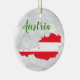 Mostre o seu amor pelo país da Áustria com este ornamento único, com um mapa da Áustria preenchido com as cores da bandeira austríaca. O texto pode ser alterado para ajustado de sua preferência.