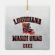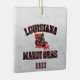 Um ornamento cerâmico Mardi Gras colofal em cores brilhantes soletrando a palavra em vermelho e preto brilhantes