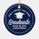 Este marinho moderno, azul e branco, Enfeites de natal de formando personalizado, apresenta seu nome de segundo grau ou de faculdade para a classe 2025. Personalize com o seu ano de graduação com o ousado roteiro manuscrito e formando o boné de um dom de graduação personalizado de excelente. Adicione sua foto de mais velho no verso. Uma manutenção comemorativa moderna para a classe mais velho.