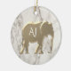 Enfeites de natal elegante de mármore e elefante de ouro com iniciais.