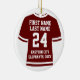 Maroon Dark Red Burgundy Replica uma camisa esportiva com o nome, o número e a equipe do seu atleta superstar. Excelente para a equipe de futebol, jogador de futebol ou atleta de hóquei! Adicione seu texto a este Natal, Feriado ou Auto Ornament desportivo personalizado. Apresenta a forma de camiseta de t-shirt, com o tipo de letra de varsidade de bloco com o seu nome, número e escola/equipe (ou outra mensagem personalizada)!
