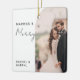 Ornamento De Cerâmica Married and Merry Photo Minimal Script Elegant