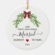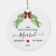 Celebrate your first Christmas as a married couple with this charming mistletoe ornament — a romantic keepsake that captures the joy of your new life together. Personalize with your names and wedding year to create a meaningful memento of your love story. The elegant mistletoe design adds a festive touch, making it the perfect addition to your holiday décor or a heartfelt gift for newlyweds celebrating their first Christmas as “Mr. & Mrs.”