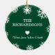 Ornamento divertido e humorístico para marcar o final de 2020. Nosso design apresenta nossa ilustração de Papais noeis divertidos desenhados à mão vestindo uma máscara com 2020 adicionado em ouro falso na máscara do rosto dos Papais noeis, os Papais noeis estão segurando papel higiênico. O ornamento apresenta um tipográfico divertido que diz "máscara de Natal de Feliz". Também adicionamos bagas festivas, verde de Natal e flocos de neve. Adicione seu monograma aos rolos de papel higiênico. O verso apresenta flocos brancos de neve, personalize com a assinatura da sua família e os nomes dos membros da família. Trabalho de arte por Moodthology Papery