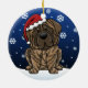 Enfeites de natal rajados bonitos do Mastiff, tirados em desenhos animados do kawaii! Esta raça adorável do cão está vestindo um chapéu vermelho do papai noel, e os flocos de neve estão caindo toda em torno dele. Absolutamente adorável, perfeito para a árvore do Xmas do amante do cão!