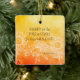 Um Enfeites de natal personalizado, citações cristãs, retrata uma escritura encorajadora em um design de aquarela abstrato com girassóis brancos simples e um fundo amarelo e laranja. Ele apresenta uma parte das Beatitudes que Jesus falou no Sermão no Monte e gravou na Bíblia Verse Matthew 5:8, "Bênçãos são a PURA no CORAÇÃO, pois eles verão Deus." Personalize o verso com um nome ou detalhes da sua escolha.