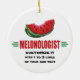 O MELONOLOGISTA é um título humorístico para alguém que ama melancia. O design apresenta uma grande fatia excelente de melancia vermelha, com uma casca verde listrada e algumas sementes de melancia preta, com uma borda vermelha ao redor do ornamento. Personalize-o com suas informações personalizadas - nome, data ou outras palavras. Perfeito para aqueles que gostam de comer melancia, jardineiros e fazendeiros cultivando melancia, restaurantes servindo melancia, mercados e lojas e mercados de fazendeiros vendendo melancia, pessoas em competições de cuspir melancia, amantes de melancia em todo lugar!