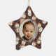 Baby's first Christmas photo ornament with a cute neutral earth tone Christmas snowman pattern with mellow smiling cream snowmen in terra cotta red hats and scarfs set on a chocolate brown background with line drawn flowers and holly. The photo and "Brandon's Merry First Christmas!" text are fully customizable using the Zazzle template functions. This design is part of the Mellow Snowmen Christmas collection where you will find many matching products like cards, pillows, stickers, gift wrap, ribbons, and tags, and custom stockings. There is also a Mellow Snowmen Xmas collection that uses the same snowmen pattern in fun traditional candy cane red and kelly green colors. The cute baby boy stock photo is by Christian Bowen on Unsplash. Merry Christmas!