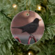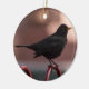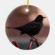 Um melro masculino (merula do Turdus) que está em uns trilhos vermelhos do metal.