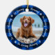 Honre o seu melhor amigo com um ornamento personalizado de memorial de fotos. Esta única manutenção do ornamento memorial de animais de estimação é o presente perfeito para você, família ou amigos para prestar tributo ao seu amado. Este ornamento memorial de cães apresenta um fundo de xadrez de verificação de búfalos azul e preto, Citação "In Loving Memory". Personalize com fotos favoritas de cães de estimação ou gatos e nome. O pedido é de dois lados, você pode fazer duas fotos favoritas, uma em cada lado. Personalize o nome na frente e as datas na parte de trás. Perfeito para um Ornamento Memorial de Natal. COPYRIGHT © 2020 Judy Burrows, Black Dog Art - Todos Os Direitos Reservados. No Amor Memória Azul Xadrez Cão Foto Pet Memorial Cerâmica