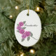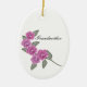 Um bonito spray floral roxo na frente. Você pode editar o texto No verso você pode colocar uma foto do seu amado com datas.