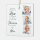 Honre o seu amado com um ornamento personalizado do memorial fotográfico. Este enfeite memorial único de natal é o perfeito guardião para prestar homenagem aos seus entes queridos. Citação: "Porque alguém que amamos está no céu, há um pouco de céu em nossa casa. " Personalize com as fotos, nome e ano de alguém que amava favoritos. Personalize com nomes, maravilhosa homenagem ao pai, mãe, avós, tias, irmãs e você pode incluir animais de estimação ou um cachorro amado. COPYRIGHT © 2020 Judy Burrows, Black Dog Art - Todos Os Direitos Reservados. Alguém No Céu Adorando Memória 3 Foto Memorial Cerâmica