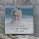 Este chic na memória amorosa, o ornamento cerâmico fotomemorial do avô é a perfeita decoração memorial da árvore de Natal. A simples design apresenta uma tipografia negra minimalista clássica com um toque rústico. Este ornamento de manutenção diz "na memória amorosa". Personalize seu ornamento de dois lados com uma foto do seu avô, pai, irmão, tio, sobrinho ou amigo, o nome e as datas de seu amado.