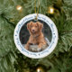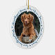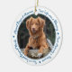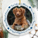 Honre seu melhor amigo com um ornamento personalizado de memorial de fotos. Esta única manutenção do ornamento memorial de animais de estimação é o presente perfeito para você, família ou amigos para prestar tributo ao seu amado. Esperamos que seu ornamento memorial traga paz, alegria e memórias felizes. Citação: "Sua vida foi uma bênção, sua memória um tesouro, você é amado além das palavras, perdido além da medida". Personalize com fotos favoritas de cães de estimação ou gatos e nome. O pedido é de dois lados, você pode fazer duas fotos favoritas, uma em cada lado. Personalize o nome na frente e as datas na parte de trás. COPYRIGHT © 2020 Judy Burrows, Black Dog Art - Todos Os Direitos Reservados. Foto de Cão Pet Perda Pet Memorial Cerâmica