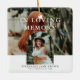Na moda Memorial 2 Foto Enfeites de natal. Design apresenta uma fotografia de modelo de arco que sobrepõe outra fotografia de sua escolha, o texto 'In Loving Memory', o nome e as datas de vida deles.