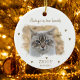 Este ornamento "sempre em nossos corações" apresenta uma foto personalizada e um nome com data de morte.