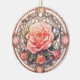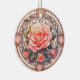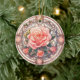 Belo ornamento memorial com uma rosa rosa rosa rosa-rosa pincelada de vidro falsa manchada. Personalize o verso com saudação, nome e datas personalizados.