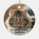 Honre seu melhor amigo com um ornamento personalizado de memorial de fotos. Este enfeite de manutenção é o presente perfeito para você, família ou amigos para prestar tributo ao seu amado. Esperamos que seu memorial traga paz, alegria e memórias felizes. Cite "Em Memória Adorável. " Personalize com fotos favoritas de cães ou gatos e nomeie. O pedido é de dois lados, você pode fazer duas fotos favoritas, uma em cada lado. Personalize o nome na frente e as datas na parte de trás. Veja 'personalizar esta modelo' para alterar a foto e o nome. COPYRIGHT © 2020 Judy Burrows, Black Dog Art - Todos Os Direitos Reservados. Na Memória Adorável - Ornamento Cerâmico do Cat Photo Pet Memorial