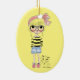 Ornamento De Cerâmica Menina bonito com vidros redondos e seu gato doce