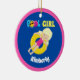 Um presente de Enfeites de natal da natação. Apresenta uma brilhante e divertida pop de cores e uma adorável menina loira de natação em um tubo interno. Personalize com o nome do seu filho. Bonito presente para um professor de natação.