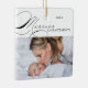 Mais feliz como o ornamento de fotos de Natal de Avós, que você pode personalizar com sua foto favorita e texto personalizado. Design de tipografia elegante com caligrafia brilhante e fácil de editar para avós novos ou estabelecidos. Este ornamento de feriado é escrito com Merrier como Avós de um lado e texto editável do outro. O texto da amostra diz "nosso primeiro natal como avós... amando a vida como avós a [nome] desde [data]". Todo o texto, exceto Merrier e Avós, é editável.