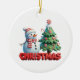 Ornamento De Cerâmica Merry Christmas Snowman and Tree, Snowman